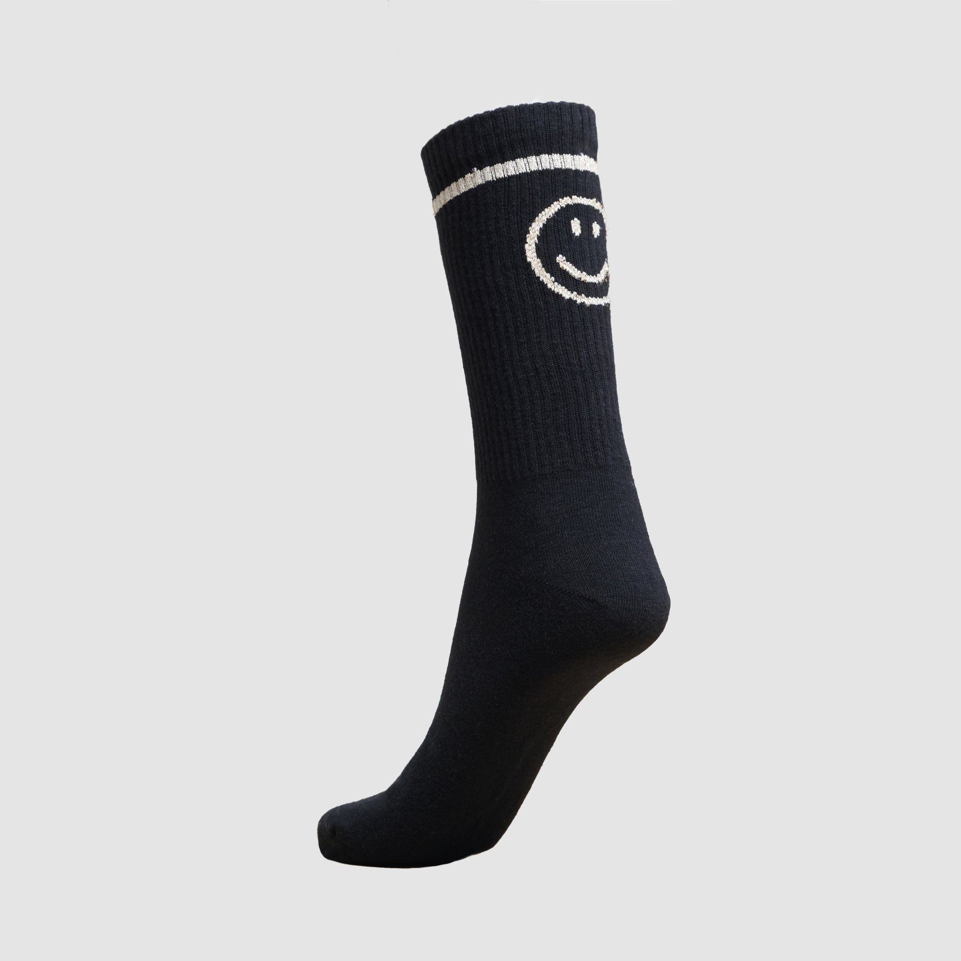 Step into joy with our Make Me Smile socks! Featuring a chic black base with a shimmering golden-metallic thread, these socks add a playful yet glamorous touch to any outfit. Whether you're dressing up or keeping it casual, their soft combed cotton blend ensures all-day comfort and style.