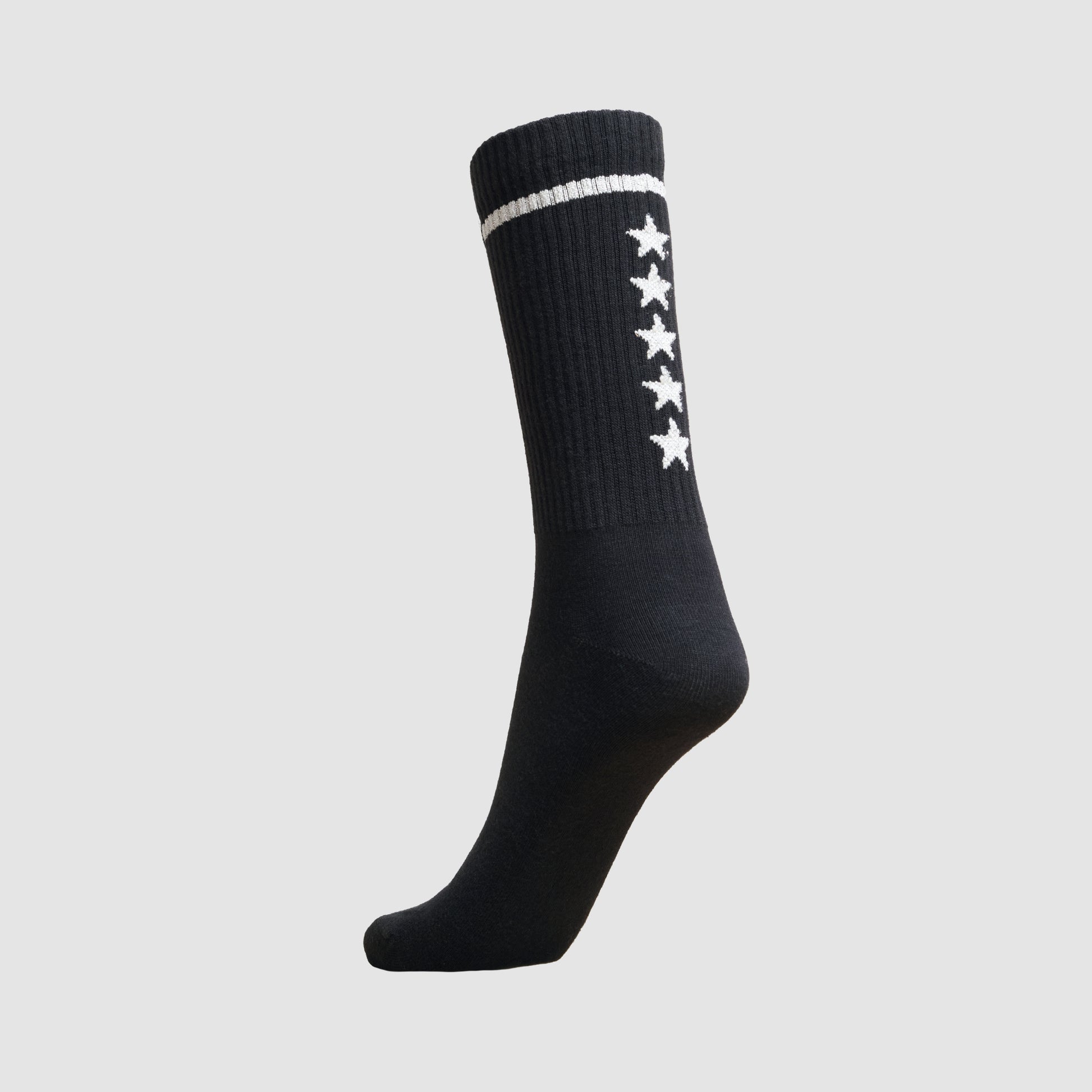 Elevate your style with our Give Me 5 Stars socks—crafted for those who love a little sparkle with every step. The black base with silver-metallic thread brings a sleek, luxurious finish, perfect for making a subtle yet stunning statement. Soft, breathable, and effortlessly stylish, these socks redefine everyday elegance.